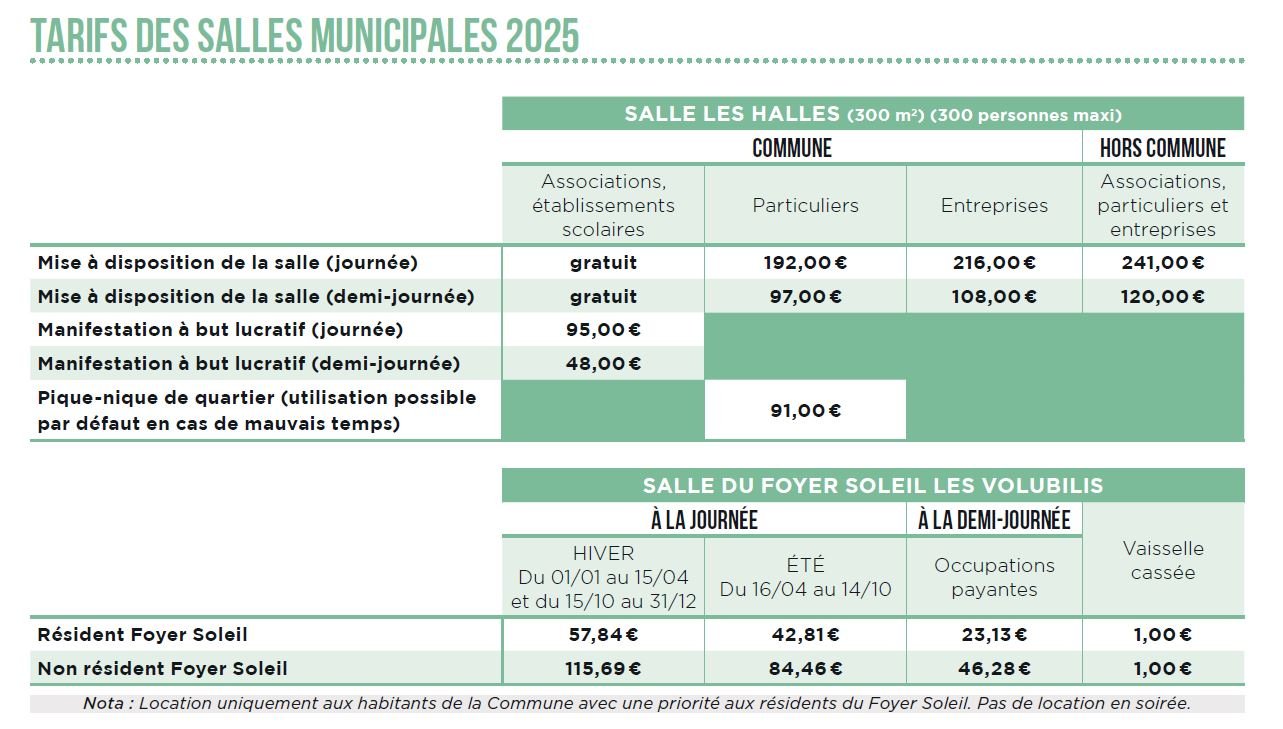 Tarifs 2025 : salle du Foyer Soleil