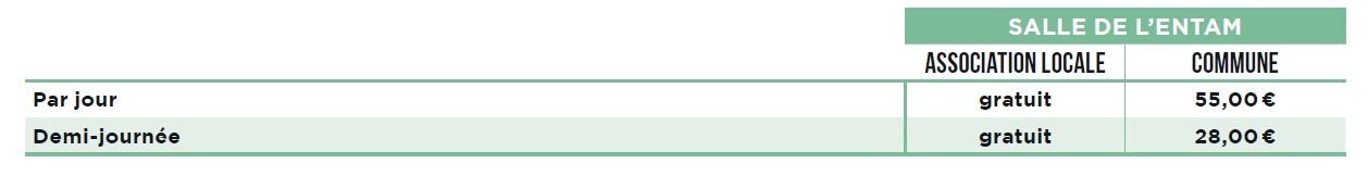 Tarifs 2025 : salle de l'Entam