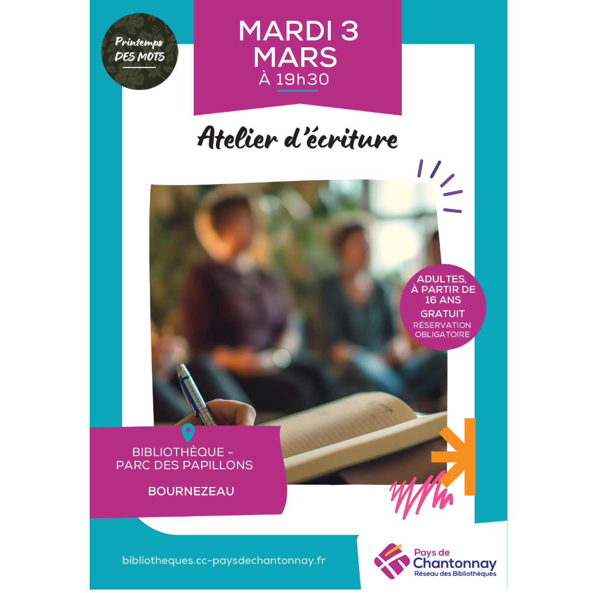 Dans le cadre du Printemps des Mots, le Réseau des bibliothèques s’anime durant tout le mois de mars, pour mettre à l’honneur les mots et pour cela rien de mieux que de débuter avec un atelier d’écriture pour mettre sur papier les mots de vos têtes.
